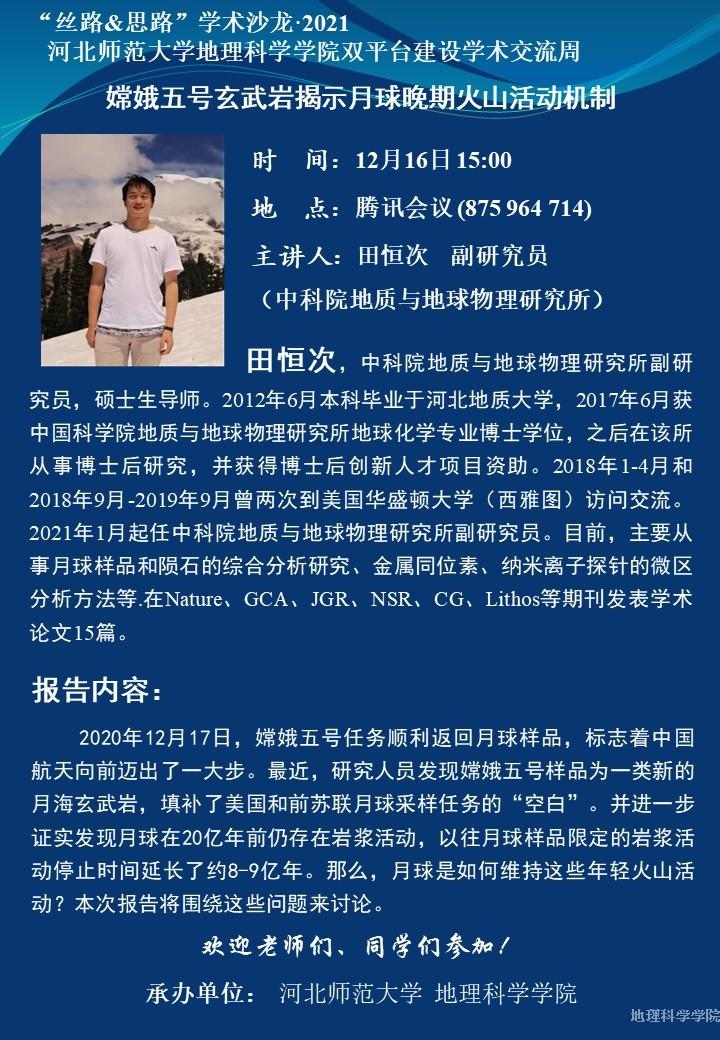 学术报告通知—嫦娥五号玄武岩揭示月球晚期火山活动机制